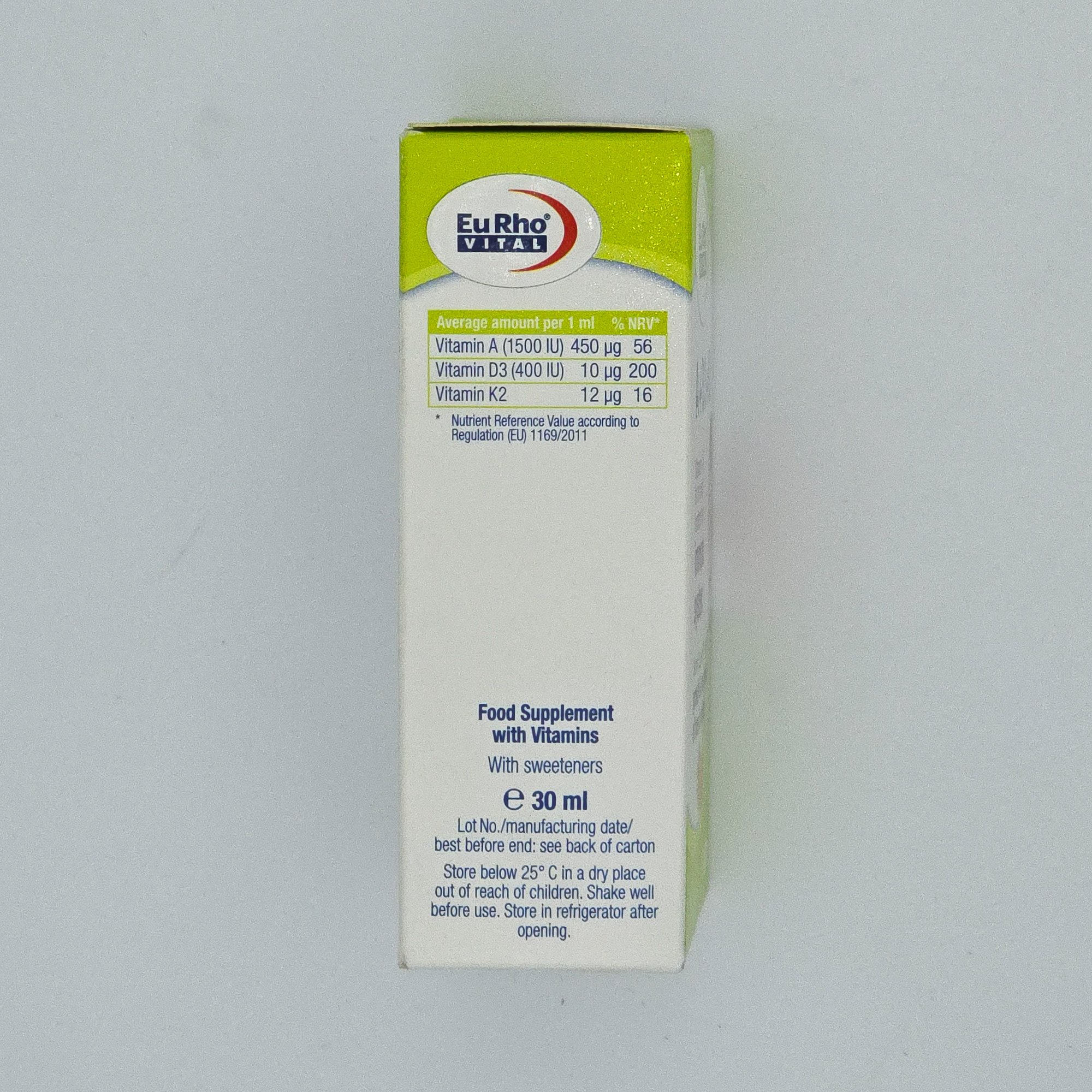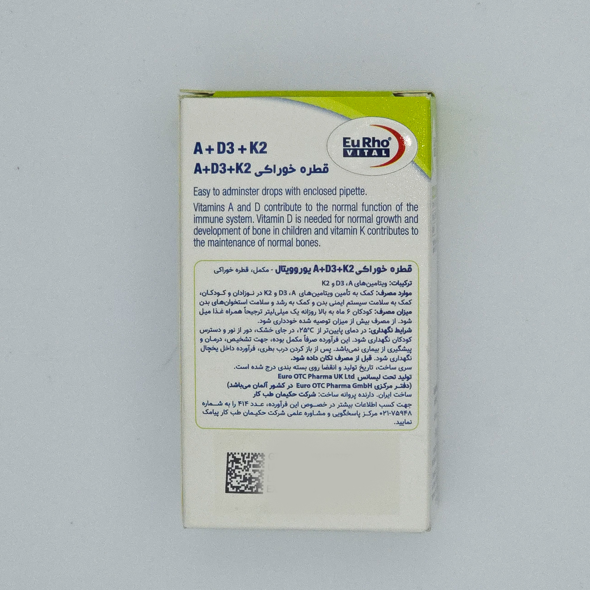 قطره ویتامین آ و د3 و کا2 یوروویتال، تحت امتیاز و لیسانس Euro OTC Pharma GmbH آلمان، در ایران با پروانه ساخت شرکت حکیمان طب کار فرموله شده است و به منظور تامین ویتامین های A ،D3 و K2 در نوزادان به منظور کمک به رشد و تکامل آن ها، سلامت استخوان ها و دندان ها، تقویت سیستم ایمنی به بازار آمده است. ویتامین آ و د3 و کا2 یوروویتال در بطری های شیشه ای قطره چکان دار 30 میلی لیتری و به فرم دارویی محلول خوراکی برای نوزادان بالای 6 ماه طراحی و عرضه می گردد.