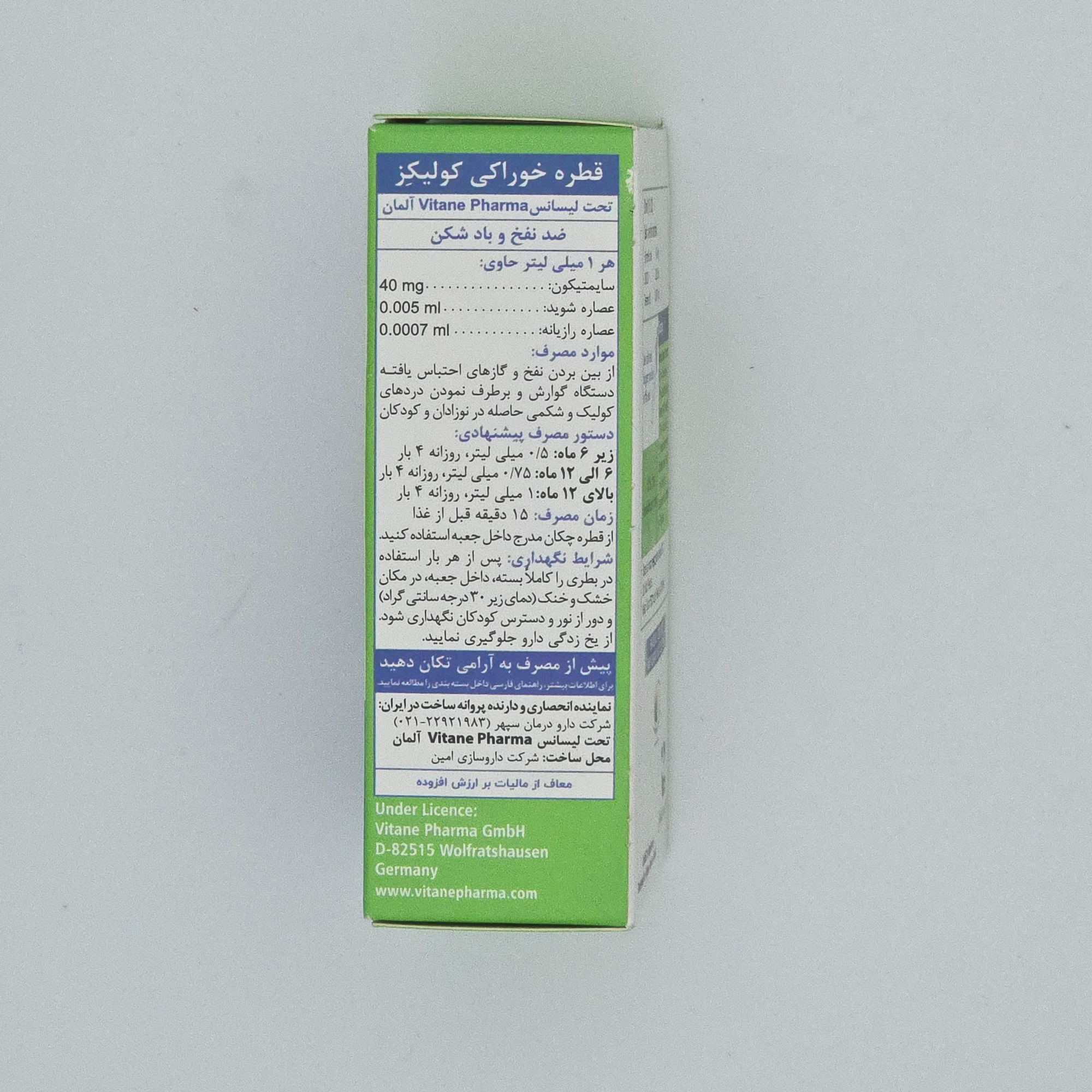 قطره کولیکز در هر میلی لیتر حاوی 40 میلی گرم سایمتیکون است.