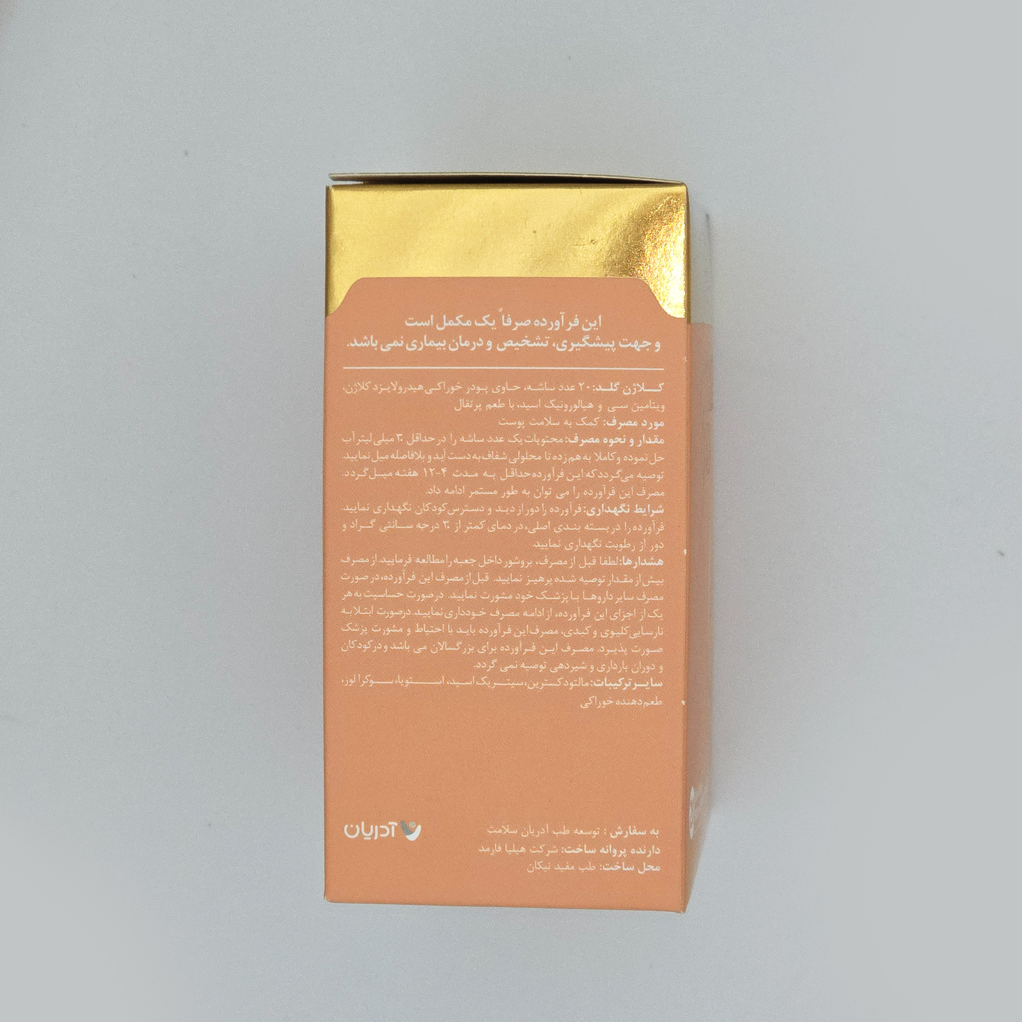 - روزانه 1 ساشه کلاژن گلد را در حداقل 30 میلی لیتر آب حل نموده و بلافاصله میل نمایید.