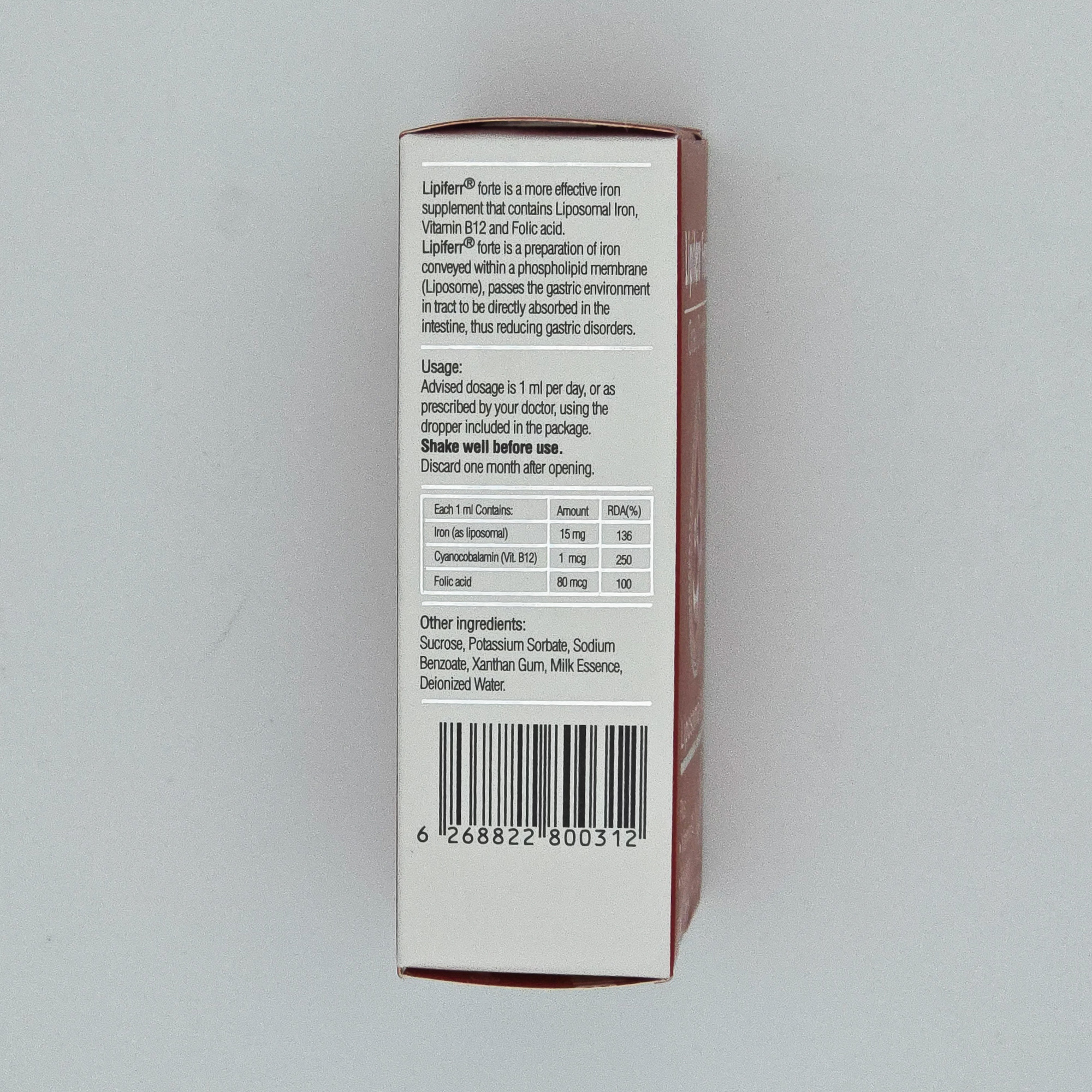 لیپیفر فورت، دارای 15 میلیگرم آهن به فرم لیپوزومال است. آهن، ماده معدنی مورد نیاز بدن برای رشد و نمو است و در بدن، از طریق ساخت هموگلوبین به انتقال اکسیژن از ریهها به سایر قسمتهای بدن کمک میکند. کمبود آهن در دوران کودکی میتواند منجر به تأخیر در رشد فیزیولوژیک، انزوای اجتماعی و کاهش تمرکز شود که برخی از این عوارض برگشتناپذیر هستند. از این رو استفاده از قطره آهن از سن 4-6 ماهگی برای همه نوزادان توصیه میشود و تا سن 2 سالگی ادامه مییابد. مکملیاری قطره آهن در کودکان نارس، کودکان با وزن کم هنگام تولد و کودکانی که مادرشان کمبود آهن داشته است به دلیل اینکه در خطر بیشتری برای آنمی فقر آهن هستند، زودتر شروع میشود. یکی از مهمترین عوارض عدم تأمین ذخایر آهن، کمخونی فقر آهن است. لیپیفر فورت، 136 درصد نیاز روزانه بدن به آهن را تأمین میکند. همانطور که در ابتدا هم اشاره شد، آهن موجود در لیپیفر فورت به فرم لیپوزومال است. آهن لیپوزومال به علت داشتن پوششی از فسفولیپید به صورت دست نخورده از دستگاه گوارش عبور کرده و به طور مستقیم از مخاط روده جذب میشود. به همین دلیل دارای عوارض گوارشی کمتری نسبت به دیگر انواع مکملهای آهن است و به علت وجود همین فرم باعث سیاهی دندانها نیز نمیشود. قطره آهن لیپیفر فورت با تأمین آهن موردنیاز بدن به بهبود و یا جلوگیری از ابتلا به کمخونی فقر آهن کمک میکند.