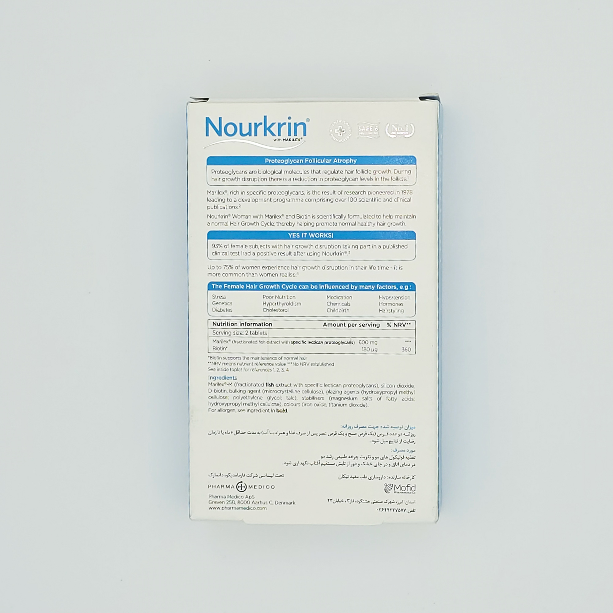_قرص نورکرین بانوان حاوی ترکیب انحصاری ماریلکس با منشاء دریایی به عنوان منبعی از پروتئوگلیکانها در جهت _تغذیه و تقویت فولیکولهای مو، بهبود چرخه طبیعی رشد و رویش مجدد موها