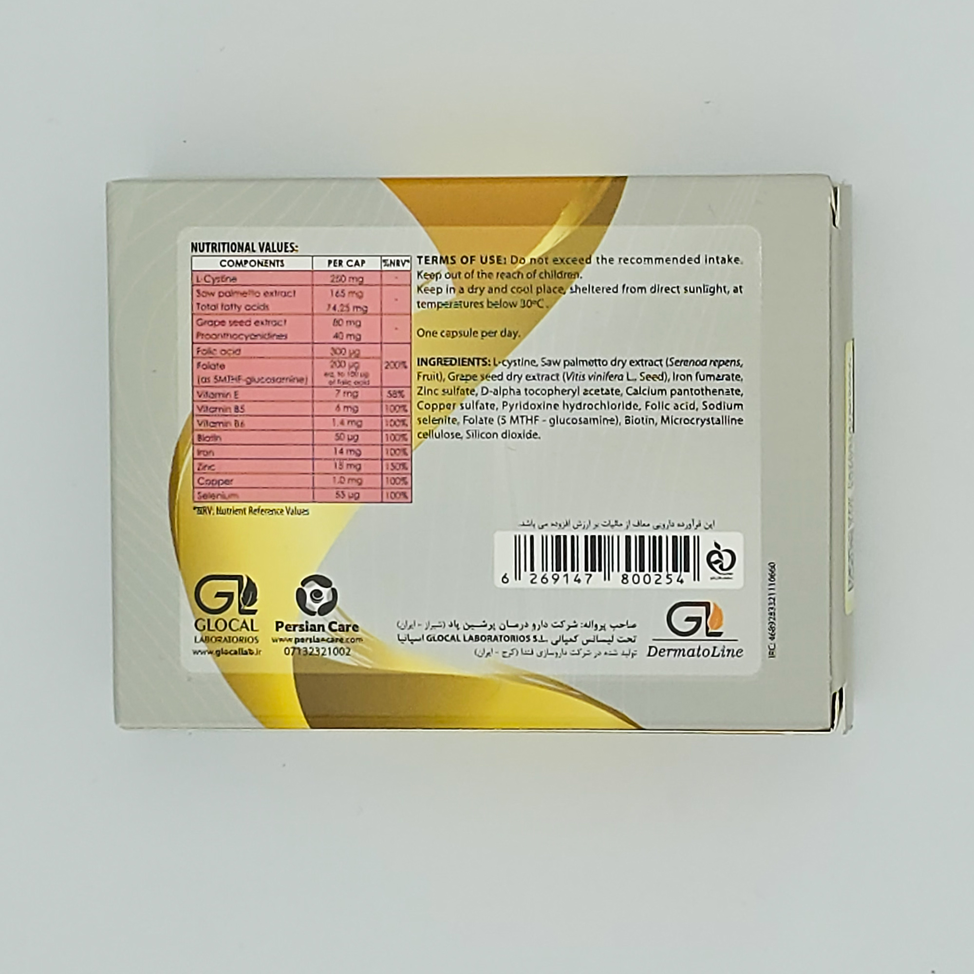 _تریکوگلوکال، حاوی عصاره نخل اره ای و هسته انگور، ویتامین ها، املاح و ال-سیستین