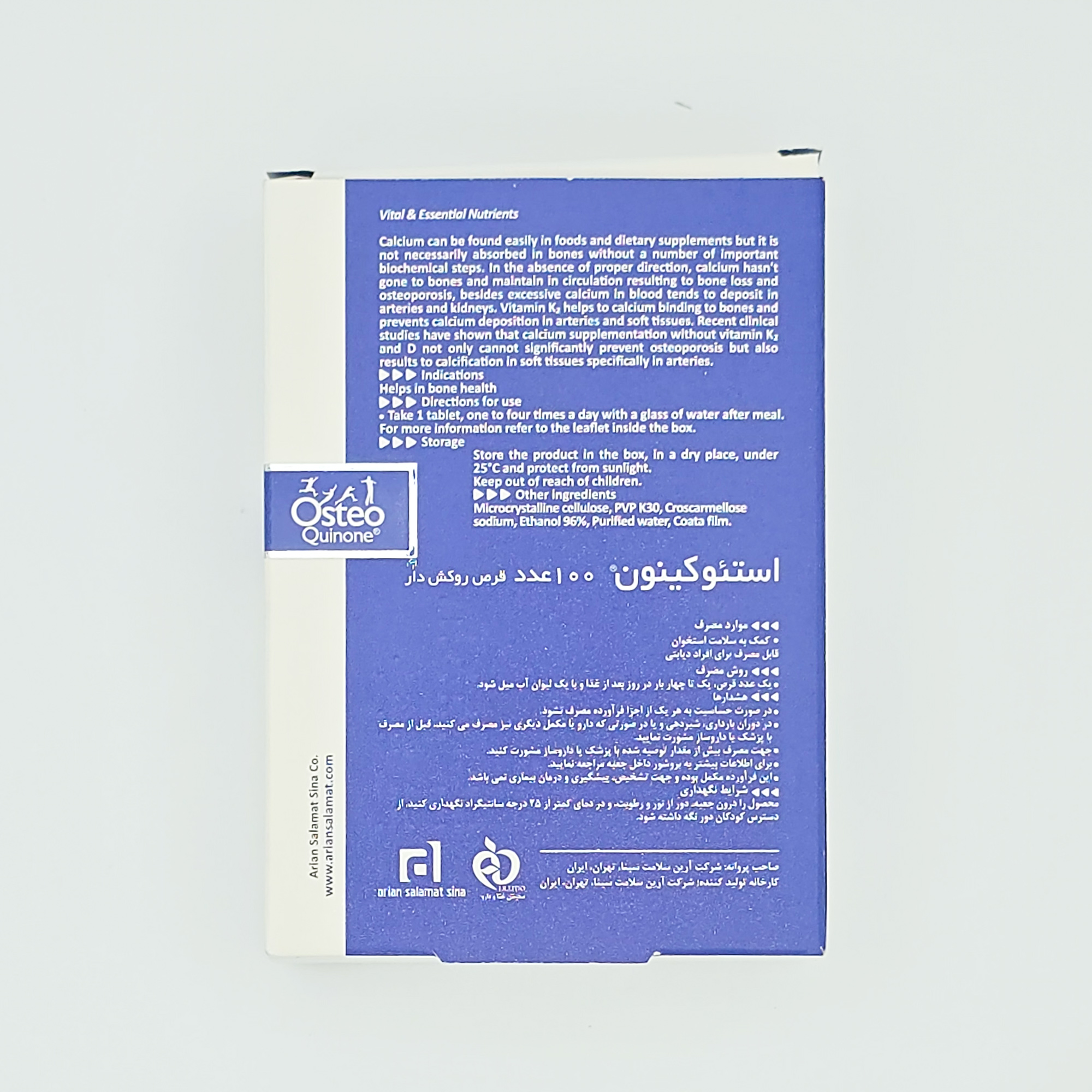 وجود ویتامین K در قرص Osteo از جمله مزایای قرص استئوکینون نسبت به بسیاری از سایر مکملهای کلسیم موجود میباشد.
